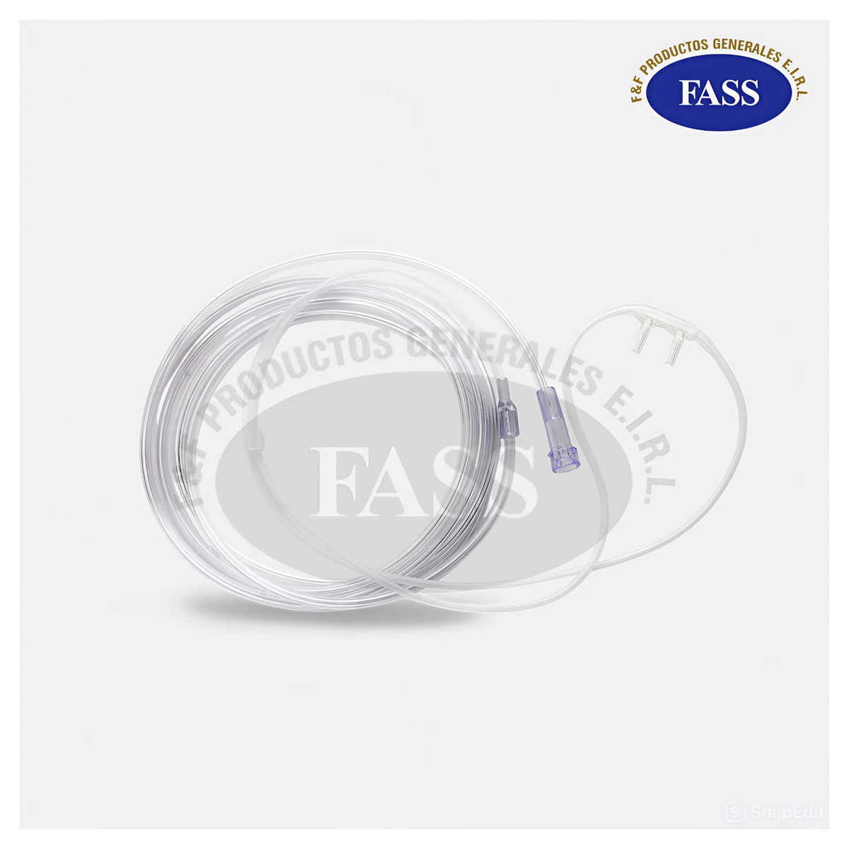 Dispositivo medico de un solo uso, con dos protuberancias que se insertan en las fosas nasales del paciente para administrar oxígeno.